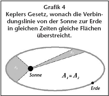jede statistishe Interpretation falsch. Im Zweiten Keplerschen Gesetz beschreibt er, daß die Verbindungslinie von der Sonne zur Erde in gleichen Zeiten gleiche Flächen überstreicht (siehe Grafik 4).